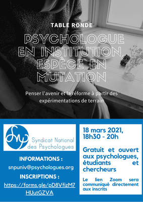 "Nous avons souhaité initier avec cette table ronde un cycle de rencontres qui entend faire dialoguer l’actuel de la profession, dans différents contextes, avec les projets (gouvernementaux, des organisations syndicales) d’un psychologue du futur; notamment ce qui s’esquisse en termes de doctorat d’exercice d’une place renouvelée/repensée dans les politiques de santé et les organisations.